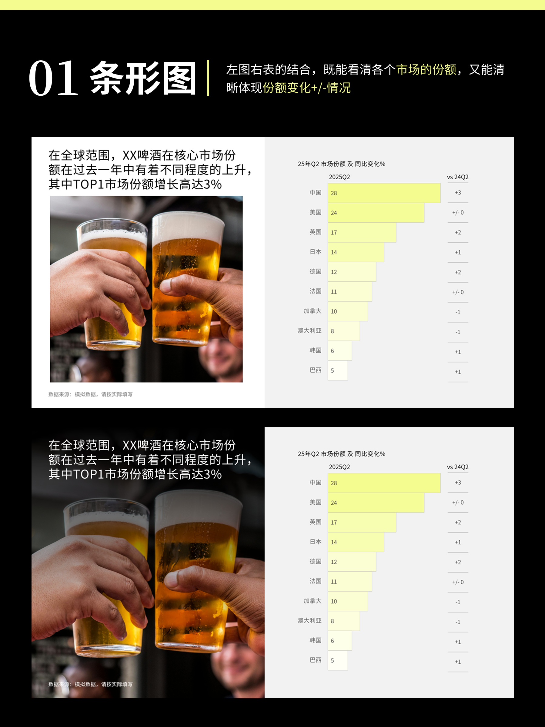 数据图表PPT模板实例 – 条形图、柱形图